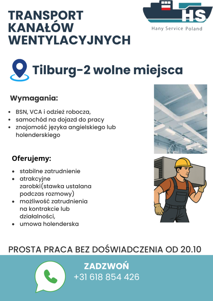 Szukamy osób do transportu kanałów wentylacyjnych – 2 wolne miejsca!